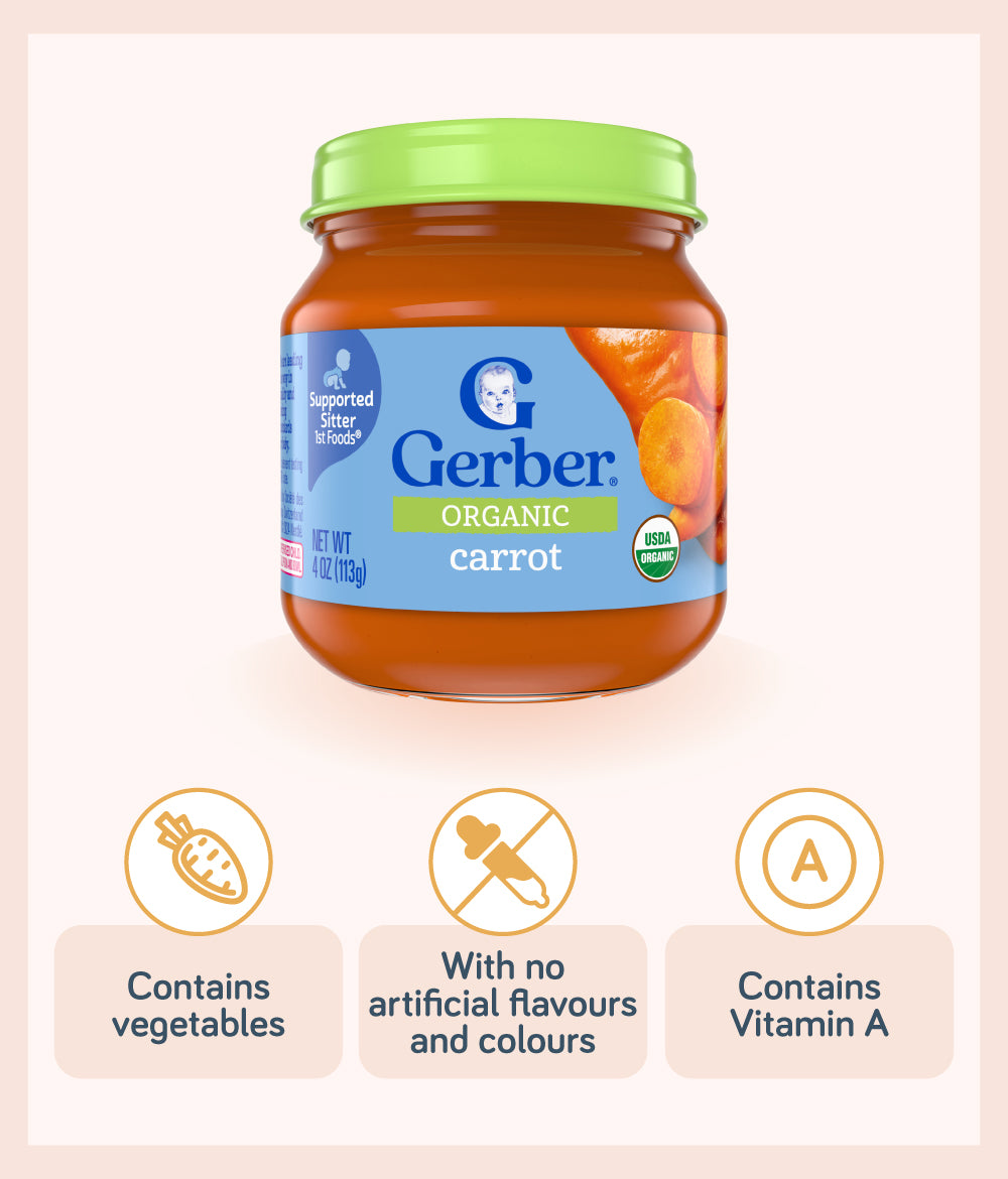 Gerber 1st Foods Organic Carrot Baby Food helps start your baby's lifelong love of veggies as you easily introduce solid foods.