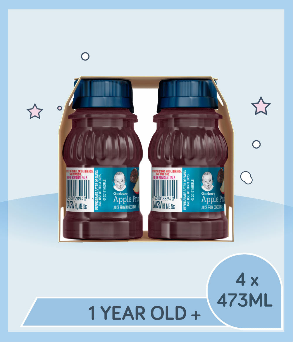 Gerber 100% Apple Prune Juice 473ml Bottle (pack of 4 x 118ml)