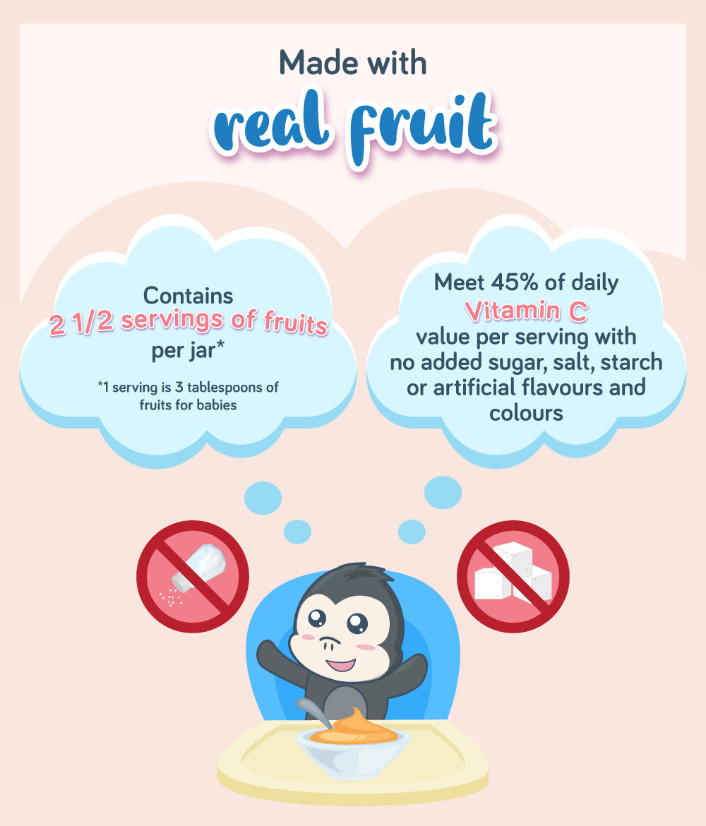 - Contains 2 1/2 servings of fruits per jar *1 serving is 3 tbsp fruit for babies
