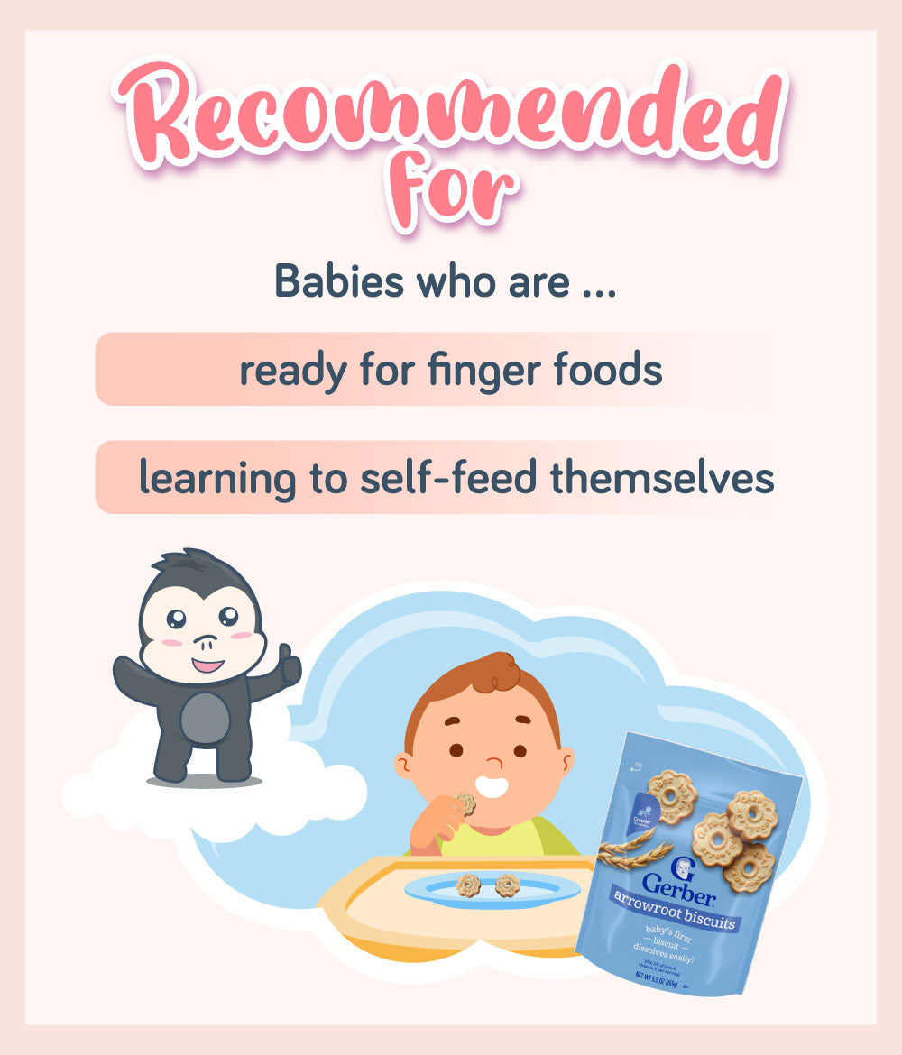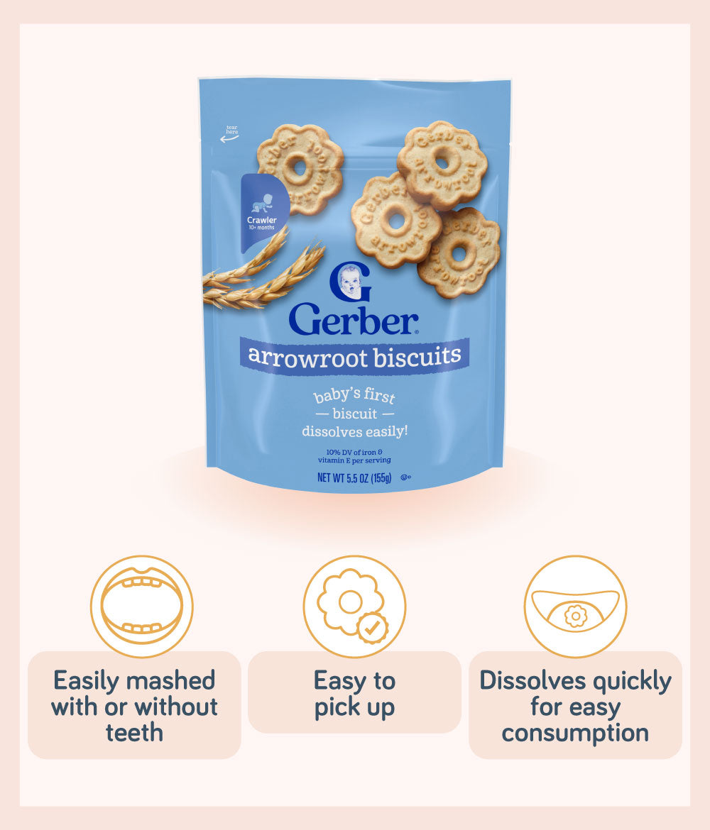 When your little one is ready for finger food, introduce Gerber Arrowroot Biscuits to let them learn to self feed!