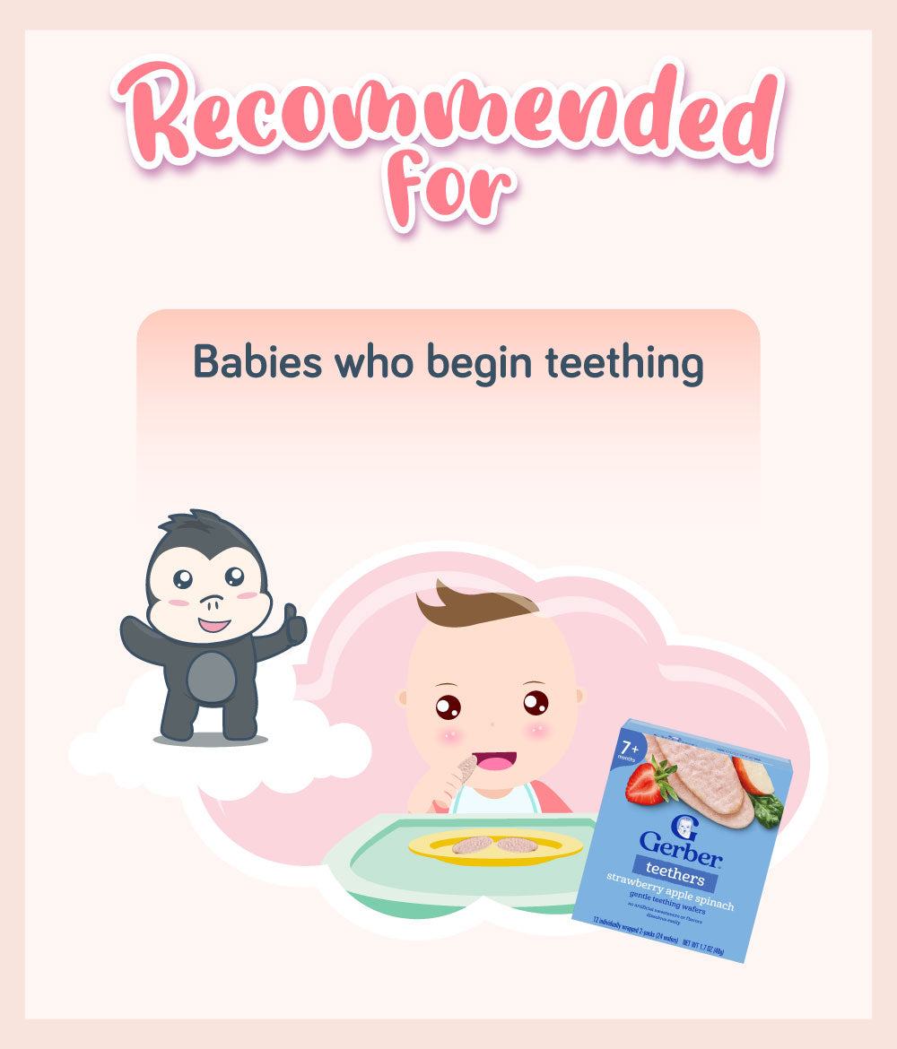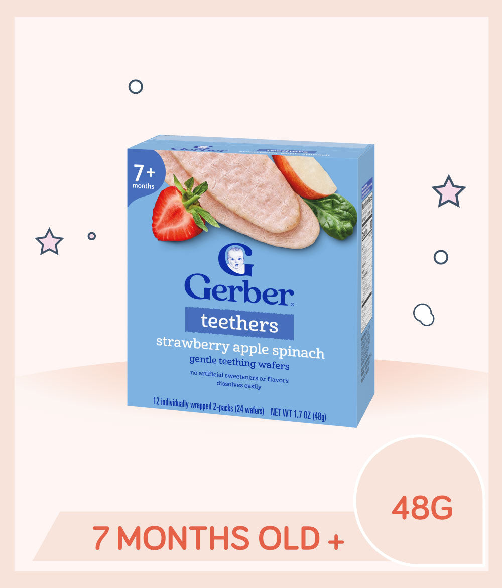 - Soothe little one’s teething tender gums with Gerber Teethers.