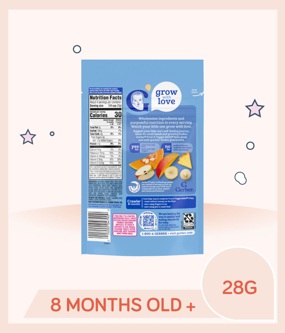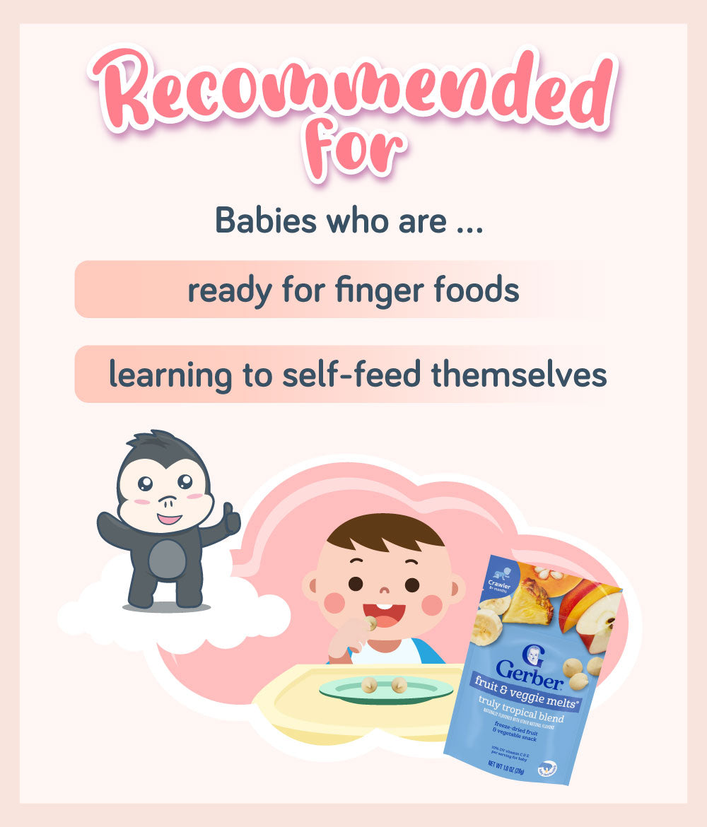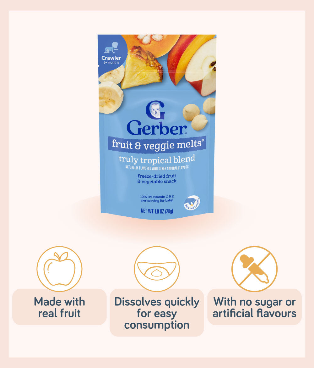 When your little one is ready for finger food, introduce Gerber Fruit & Veggie Melts to let them learn to self feed!
