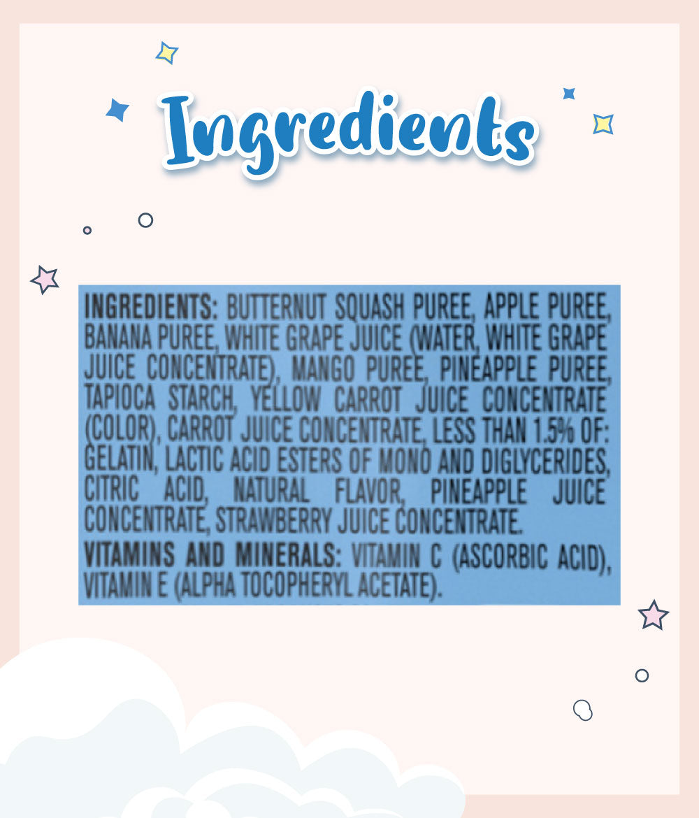 - This product should only be fed to seated, supervised children who are accustomed to chewing solid foods.