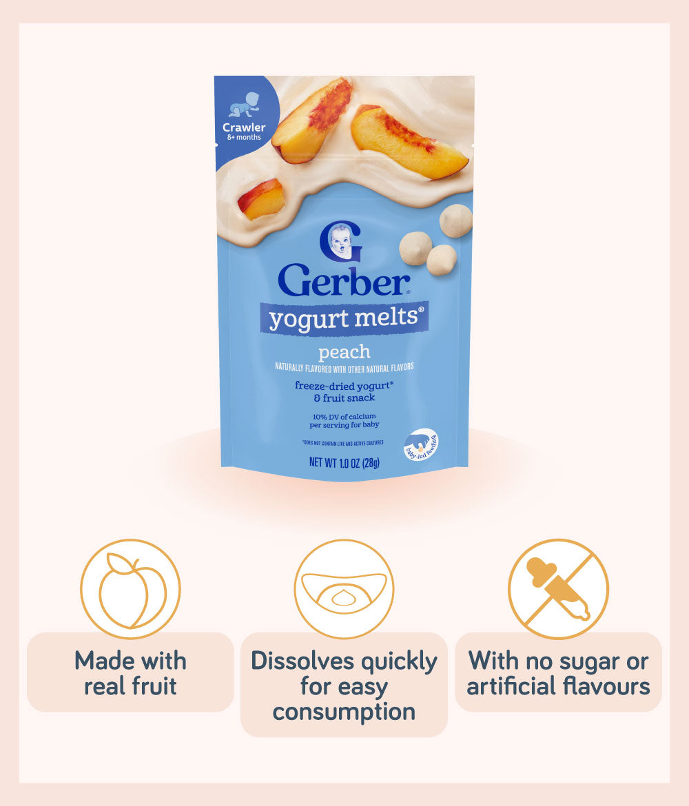 When your little one is ready for finger food, introduce Gerber Yogurt Melts to let them learn to self feed!
