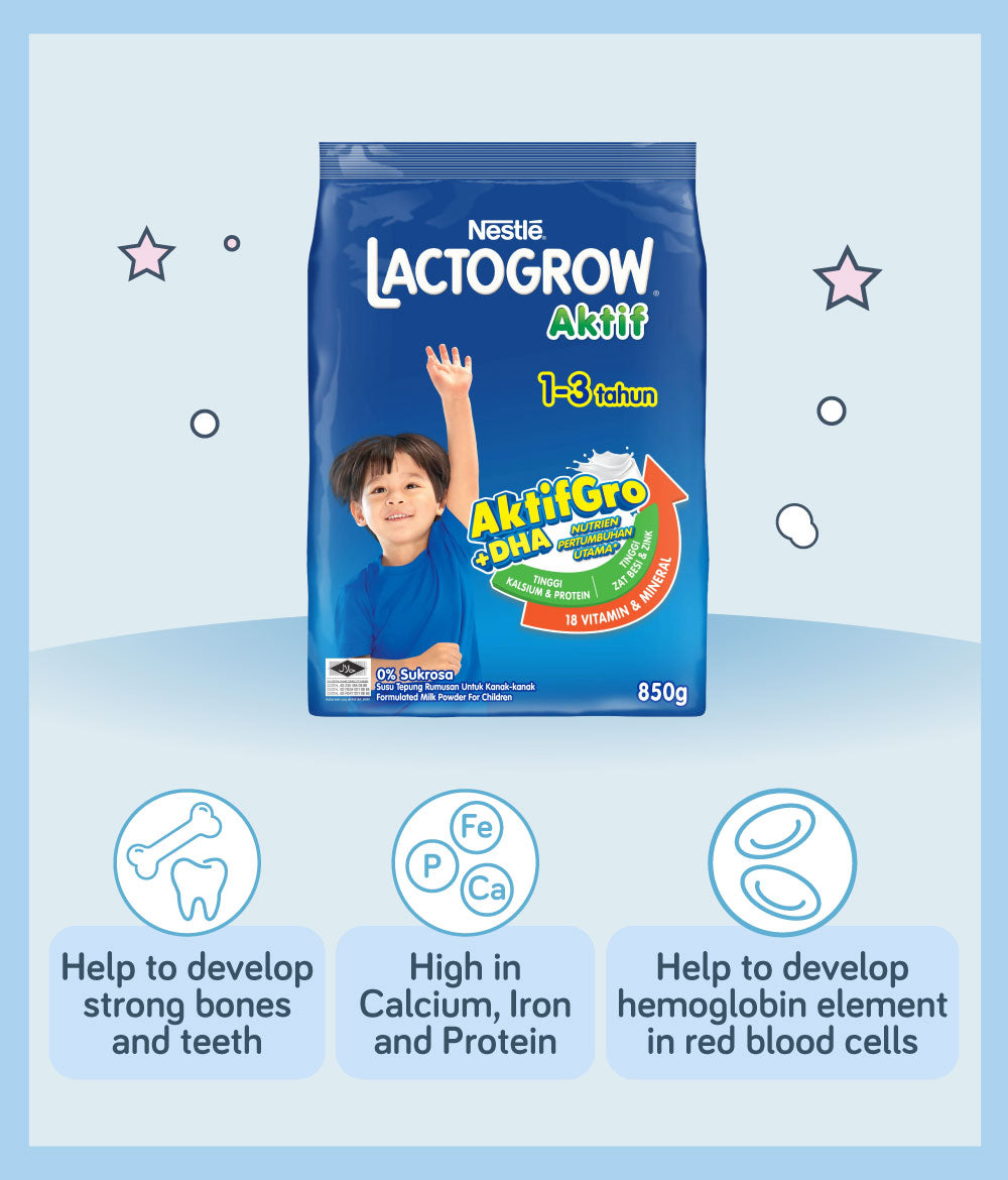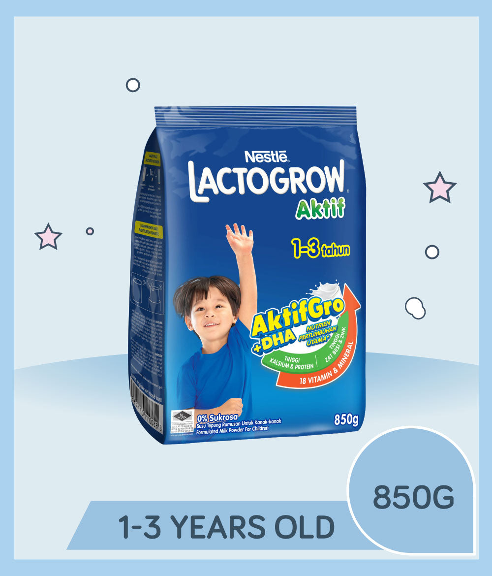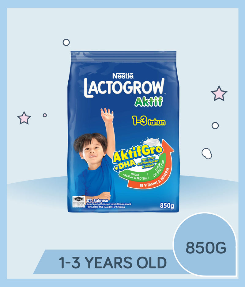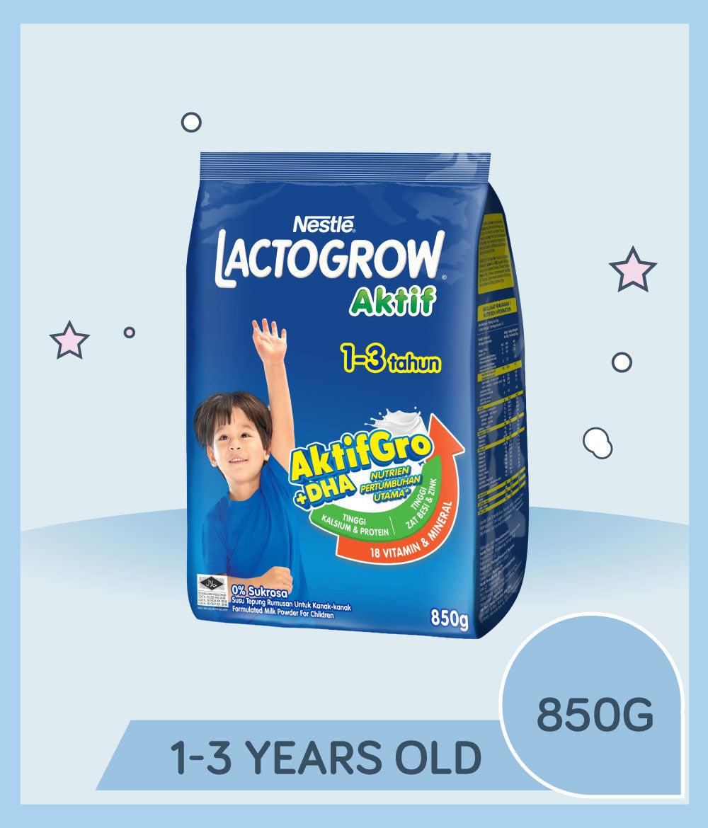 Lactogrow Aktif 1-3 850g Pouch (expiry date : 21/10/2026)