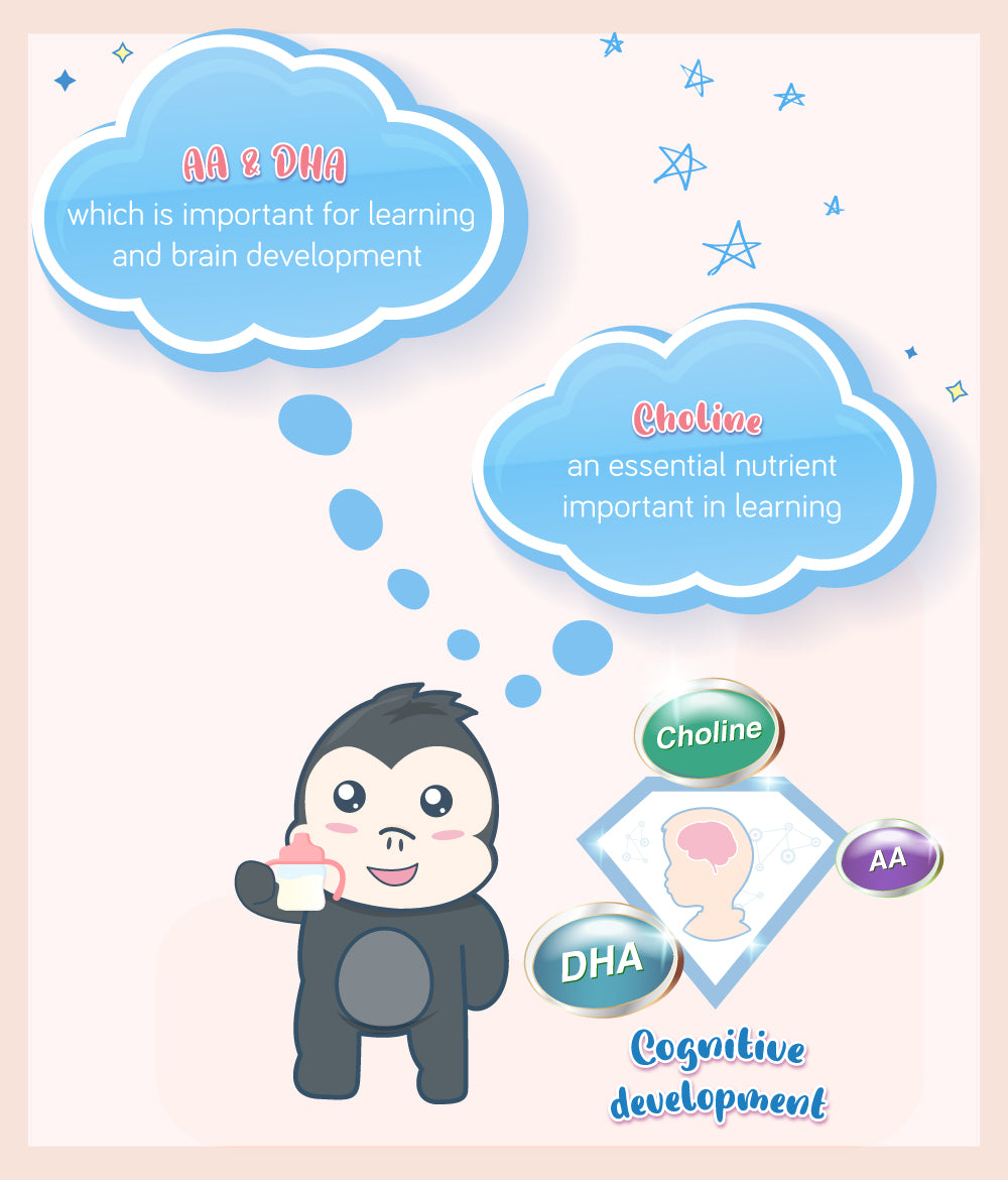The addition of AA (Arachidonic acid) and DHA (Docosahexaenoic acid) in your little one’s diet has been found to play a key role in cognitive and visual development.