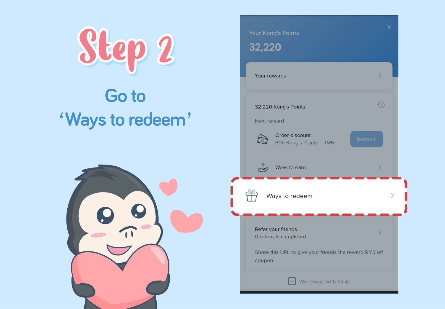 A: It’s easy. Just sign up to gain member benefits and earn 500 Kong’s Points with free shipping worth RM6.00 with a minimum spend of RM120.00 (applicable to total purchase amount on products per receipt/transaction/order only, exclude shipping fee).